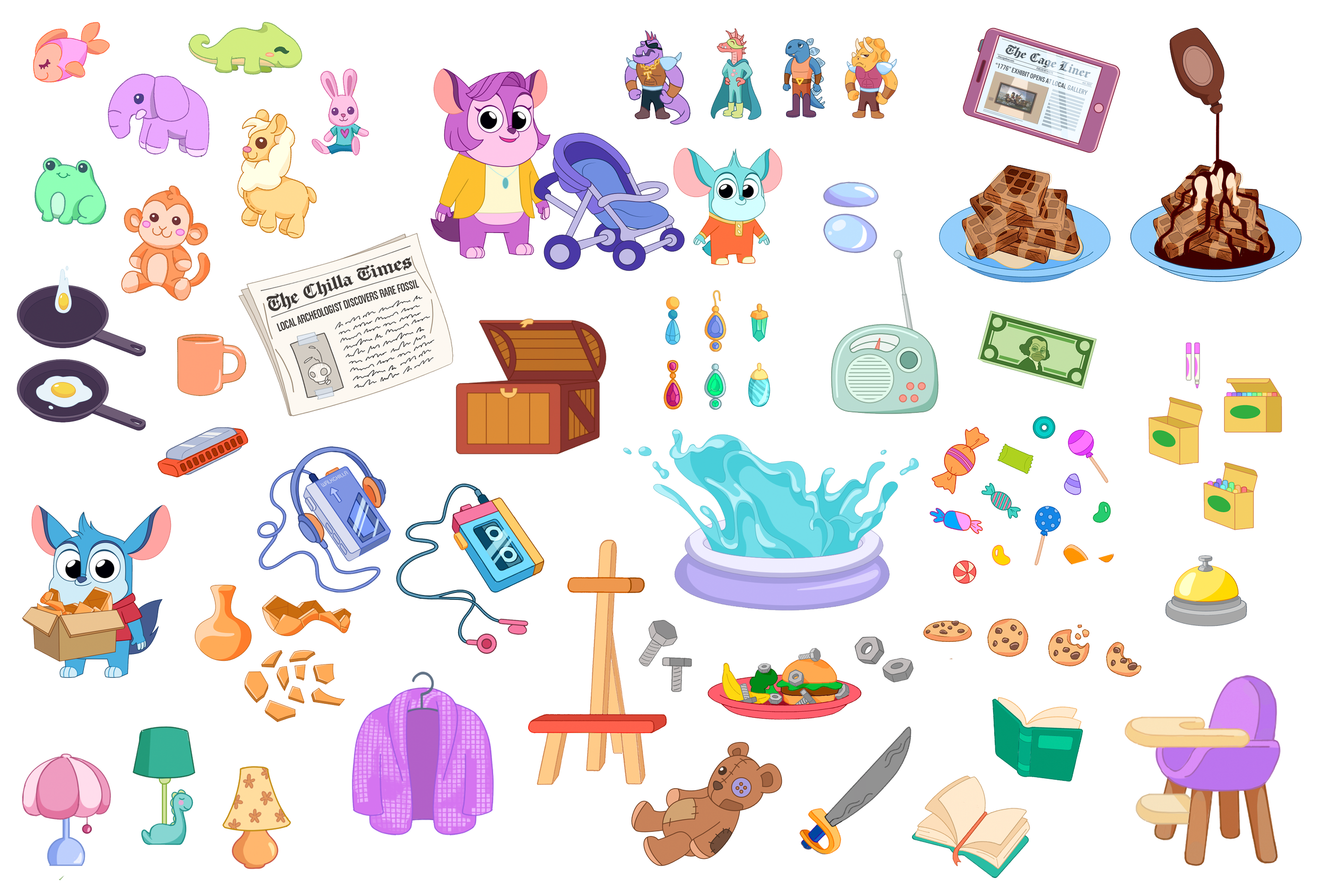 Concept art, FX keys, background color passes and final production art for season 1 of Bentkey’s show Chip Chilla. Concept art was done in Adobe Photoshop, and final asset production in Illustrator. Each asset had 2-3 versions for client to choose from, which was a fun challenge - to keep iterating even after the first successful design, and become more efficient at creating elements that fit in the world/Chilla style.